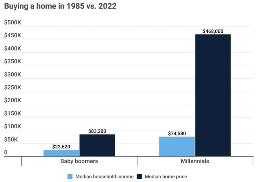 Millennials, here again, came of age in an inhospitable real estate market where the typical house costs more than the typical family earns, effectively closing them out of both home ownership and real estate appreciation.
