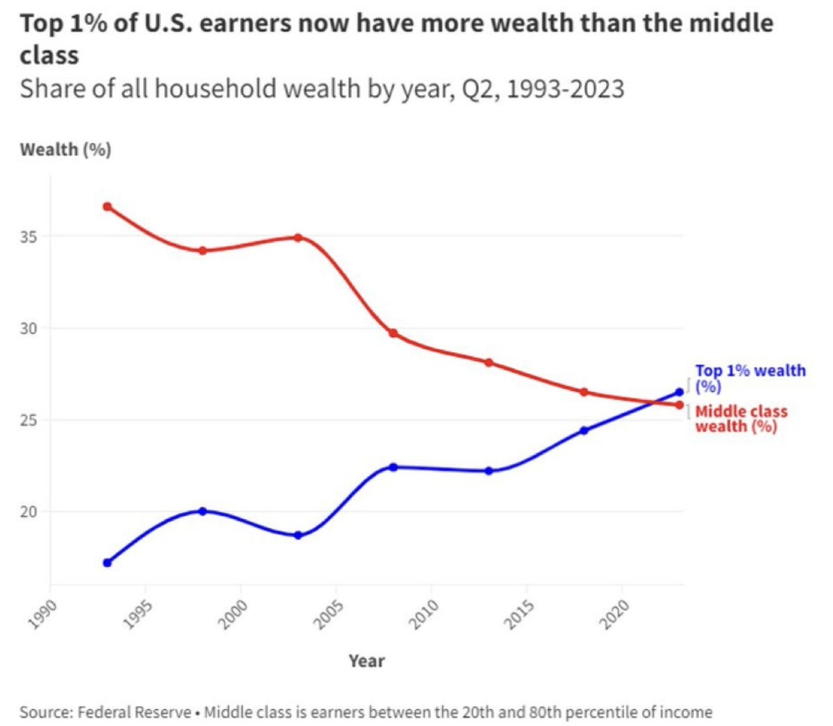 An important line was recently crossed, when the wealth of America’s 1% surpassed that of its entire middle class: