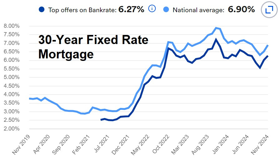 And mortgage rates, which were supposed to fall when the Fed started easing in September, are instead rising. 7%, here we come.