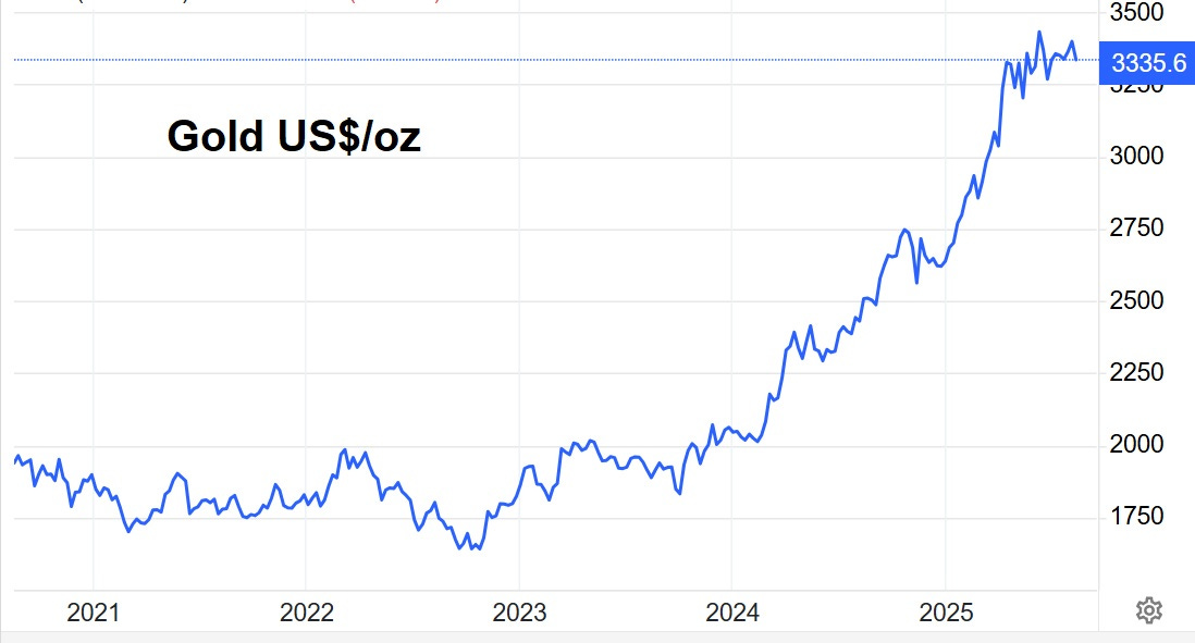 We Now Have the Problem Everyone WantsIs it time to take profits? John RubinoAug 16, 2025∙ Paid98358ShareOver the past five years, gold has done this:And so far this year, GDX (an ETF that owns most of the large gold miners), has done this: This post is for paid subscribersSubscribeAlready a paid subscriber? Sign inPreviousNext