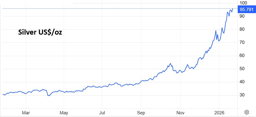 Silver, as we all know, has rocketed beyond December’s $63 level: